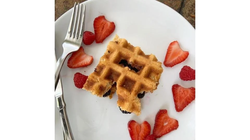 Creating the letter "R" out of a waffle for Rachelle would be a meaningful nod to her personal journey with food and cooking. Since waffles were the first vegan recipe she mastered, using them to form an "R" would symbolize her beginnings in the culinary world. The texture and grid pattern of a waffle could be shaped or carved into a bold "R," either crafted by hand using the waffle. This design would capture the warmth of her story, showcasing how a single food sparked her love for crafting dishes that are both creative and healthy.